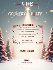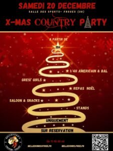 Le Samedi 20 Décembre 2025, Journée Country Party à partir de 15h00, chez * Belldonn’s Country Valley*, Salle des Sports, à Froges (38), Isère.