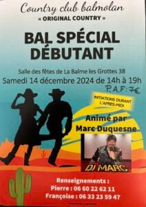 Accueil » Événements » (38) LA BALME LES GROTTES / APRES MIDI BAL COUNTRY DEBUTANT LE 14.12.24.