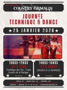 Le Dimanche 25 Janvier 2026, Journée Country Technique et Danse chez *Country Grimaldi*, à partir de 10h30, 11 Boulevard des Alpes, à Meylan (38), Is