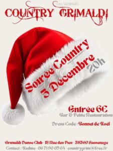Le Vendredi 05 Décembre 2025, Soirée Country de Noel à 20h00 , chez *Country Grimaldi*, 12 rue des Pies, à Sassenage (38360), Isère.