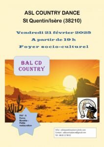 Le Vendredi 21 Février 2025, Bal Country cd des *ASL Country Dance*, à 19h00, Foyer Socio Culturel de St Quentin (38210), Isère.
