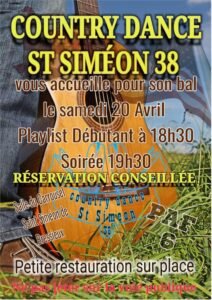 Le Samedi 20 Avril 2024, Bal Country à 19h30, Salle du Carrousel, à St Siméon de Bressieux (38), Isère.
