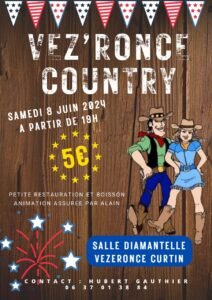 Le Samedi 08 Juin 2024, Soirée Country à 19h00, Salle Diamantelle, à Vezeronce Curtin (38), Isère.