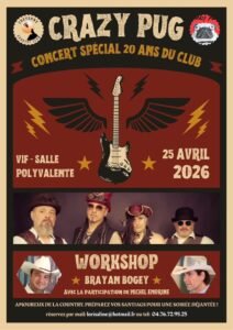Le Samedi 25 Avril 2026, Journée Country Spéciale pour les 20 ans du Club avec Workshop et un Concert des *Crazy Pug*, Salle Polyvalente de Vif (38), Isère.