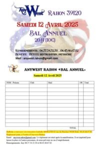 Le Samedi 12 Avril 2025, Bal Country annuel chez *Anywest *, à 20h00, à Rahon (39120), Jura.