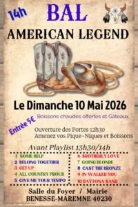 Le Dimanche 10 Mai 2026, Après Midi Bal *American Legend*, à 14h00, Salle du Foyer , Mairie de Benesse Maremne (40230), Landes.