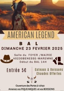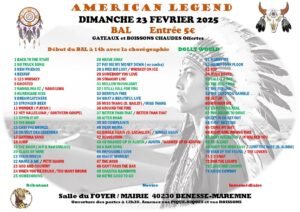 Le Dimanche 23 Février 2025, Après Midi Bal Country des *American Legend*, à 14h00, Salle du Foyer , Mairie, à Benesse Maremne (40230), Landes.