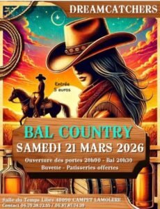 Le Samedi 21 Mars 2026, Bal Country des *Dream Catchers*, à 20h30, Salle du Temps Libre, à Campet la Molère (40090), Landes.