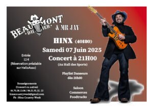 Les 07 et 08 Juin 2025, Week End Country avec Workshops et Concert de *Didier Beaumont*, à Hinx (40180), Landes.