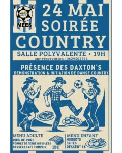 Le Samedi 24 Mai 2025, Soirée Country à 19h00, avec *Les Daxton’s*, qui feront Initiation de Danse Country, Salle Polyvalente de Mees (40), Landes.