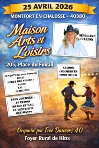 Le Samedi 25 Avril 2026, Journée Country avec *Séverine Fillion*, à partir de 14h00, Maison Arts et Loisirs, 205, Place du Foirail, à Montfort en Chalosse (40380), La