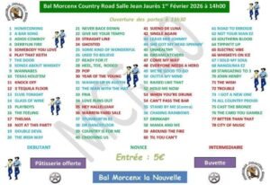 Le Dimanche 1er Février 2026, Après Midi Bal Country des *Country Road*, à 14h00, Salle Jean Jaurès, à Morcenx la Nouvelle (40), Landes.