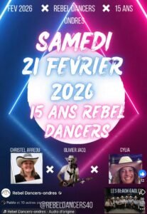 Le Samedi 21 Février 2026, Journée Country pour Feter les 15 ans des *Rebel Dancers*, à partir de 14h00, à Ondres (40), Landes.
