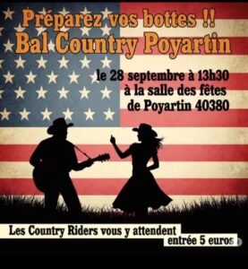 Le Dimanche 28 Septembre 2025, Après Midi Bal Country des *Country Riders*, à 13h30, Salle des Fetes de Poyartin (40380), Landes.