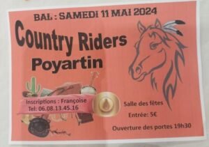 Le Samedi 11 Mai 2024, Bal Country à 19h30, Salle des Fetes de Poyartin (40), Landes.