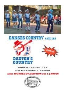 Le Dimanche 24 Aout 2025, Après Midi Country Dance des *Daxon’s Country *, à 14h30, Parc de la Pandelle, à Soustons (40140) Landes.