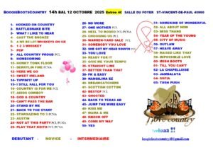Le Dimanche 12 Octobre 2025, Après Midi Bal Country des *Boogie Boots Country*, à 14h00, Salle du Foyer, à St Vincent de Paul (40990), Landes.
