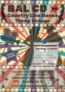 Le Vendredi 25 Octobre 2024, Bal Country Line Dance cd (Thème Vintage), à 20h30,  animé par *Léa Country Dance*,  chez *Les Crazy Love Country*, Ferme de Courcimont, à Nouan le Fuzelier (41600), Loir et Che