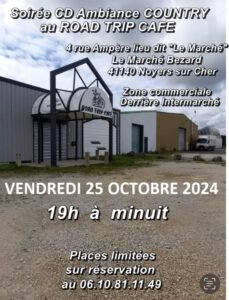 Accueil » Événements » (41) NOYERS SUR CHER / SOIREE COUNTRY LE 25.10.24.