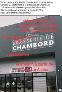 Le Samedi 27 Septembre 2025, Soirée Country avec *Country Forever*, à La Brasserie de Chambord, 125 Route Nationale, à St Gervais la Foret (41350), Loir et C