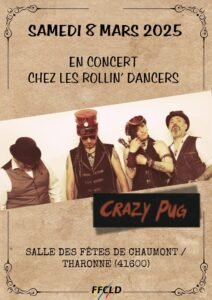 Le Samedi 08 Mars 2025, Soirée Country chez les *Rollin’Dancers*, avec un Concert des *Crazy Pug*, Salle des Fetes de Chaumont, à Tharonne (41600), Loir et Cher.