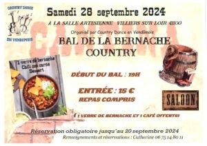 Accueil » Événements » (41) VILLIERS SUR LOIR / BAL COUNTRY ET REPAS LE 28.09.24.