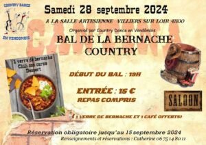 Le Samedi 28 Septembre 2024, Bal Country à 19h00, Salle Artesienne, à Villiers sur Loir (41100), Loir et Cher.