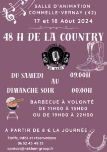 Les Samedi 17 et Dimanche 18 Aout 2024, Week End 48 h Country, de 09h00 à 00h00, Salle D’Animation de Comm