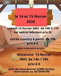 Accueil » Événements » (42) GENILAC / WEEK END COUNTRY LES 14 ET 15.02.26.