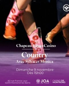 Le Dimanche 09 Novembre 2025, Après Midi Country Dance avec *Sylvie et Monica*, à 15h00, Chapeau Lasso Casino, 82 rue Francis Laur, à Montond les Bains (42210), Loire.