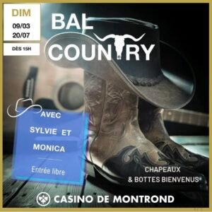 Le Dimanche 09 Mars 2025, Après Midi Bal Country animée par *Sylvie et Monica*, de 15h00 à 19h00, Casino Joa, 82 rue Francis Laur, à Montrond les Bains (42210), Loire
