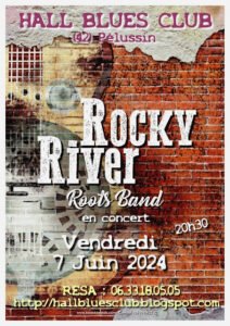 Le Vendredi 07 Juin 2024, Soirée Concert des *Rocky River Roots Band*, à 20h30, Hall Blues Club , à Pélussin (42), Loire.