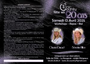 Le Samedi 12 Avril 2025, Journée Country chez *Tonic Country*, qui Fetera ses 20 ans avec *Chrystel Durand* et *Séverine Fillion*, Salle de L’Era, Le Rougerat, à Perignieux (42380), Lo