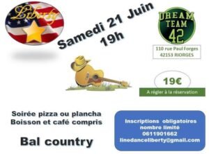 Le Samedi 21 Juin 2025, Bal Country avec *Line Dance Liberty*, à 19h00 110 rue Paul Forges, à Riorges (42153), Loire.