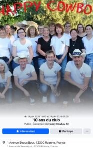 Les 13 et 14 Juin 2026, Week End Country chez *Happy Cowboy 42*, qui Fetera les 10 ans du Club, à partir de 13h00 ,
