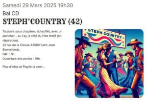 Le Samedi 29 Mars 2025, Bal Country cd chez *Steph’Country*, à 19h30,