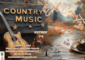Le Samedi 20 Septembre 2025, Bal Country à 19h00, chez *Country D’yssi*, Foyer Rural, 9003 rue Jean de Bourbon, à Yssingeaux (43200), Haute Loire.