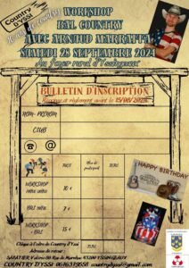 Le Samedi 28 Septembre 2024, Journée Country de *Country D’Yssi*, qui Fetera ses 10 ans, avec *Arnaud Marraffa*, Workshop à partir de 14h00 et Bal Country cd, Foyer Rural, 9003, rue Jean de Bourbon, à Yssinge