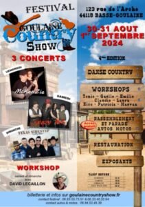 Accueil » Événements » (44) BASSE GOULAINE / FESTIVAL GOULAINE COUNTRY SHOW DU 30.08. AU 01.09.24.