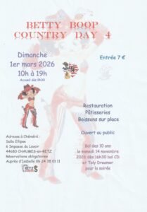 Le Dimanche 1er Mars 2026, Jounée Country Day, de 10h00 à 19h00, Salle Elipse, 6 Impasse du Lavoir, à Chaumes en Retz (44680), Loire Atlantique.