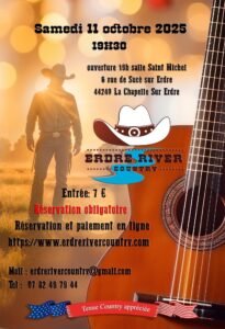Le Samedi 11 Octobre 2025, Soirée Country des *Erdre River Country*, à 19h00, Salle St Michel, 6 rue de Sucé sur Erdre, à La Chapelle sur Erdre (44240) , Loire