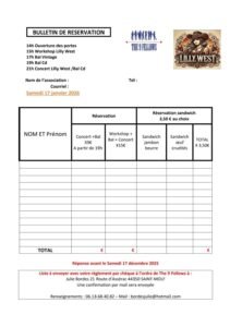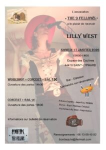 Le Samedi 17 Janvier 2026, Journée Country à partir de 14h00, chez *The 9 Fellows*, avec Workshop et Concert de *Lilly West *Espace des Coulines, à S