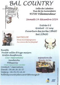 Accueil » Événements » (45) VILLEMANDEUR / BAL COUNTRY LE 14.12.24.
