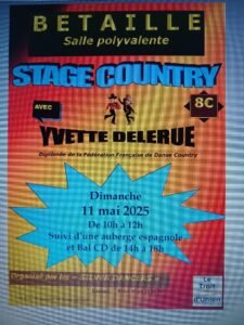 Le Dimanche 11 Mai 2025, Journée Country chez *Les Silver Dancers*, de 10h00 à 18h00, avec Stage Country de *Yvette Delerue* et Bal Country cd, Salle Polyvalente de Betaille (46), dans