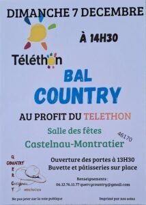 Le Dimanche 07 Décembre 2025, Après Midi Bal Country Téléthon, chez *Quercy Country*,