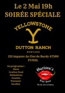 Le Samedi 02 Mai 2026, Soirée Country Spéciale *Wellowstone Dutton Ranch Montana *, 231 Impasse du Clos de Bardy à Fumel (47500), Lot et Garonne.