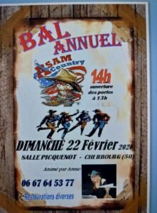Le Dimanche 22 Février 2026, Après Midi Bal Country annuel animée par *Annie*, chez *Asam Country*, à 14h00, Salle Picquenot, à Cherbourg (50), Manche.