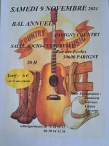 Le Samedi 09 Novembre 2024, Bal Country annuel des *Parigny Country*, à 20h00, Salle Socio Culturelle, rue des Ecoles, à Parigny (50600), Manche.