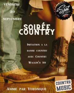 Le Vendredi 20 Septembre 2024, Soirée Country animée par *Veronique*, avec Initiation par *Country Walkin’50*, *Le Spot*, 426, rue Jules Vallès, à St Lo (50), Manche.