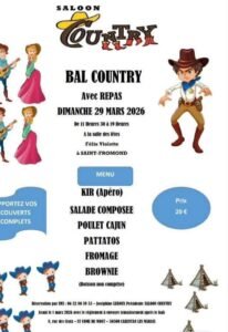 Le Dimanche 29 Mars 2026, Après Midi Bal Country avec Repas, de 11h30 à 19h00, Salle des Fetes Félix Violette, à St Fromond (50620), Manche.